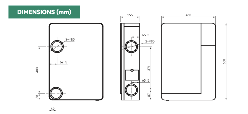Wall-mounted ERV ventilation unit with energy recovery.A recuperator designed to ensure your living space is always filled with fresh, revitalised air, our system not only improves the air quality in your home, but also saves energy, making it an environmentally friendly choice for modern homes.