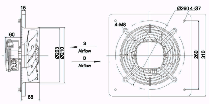 Industrial fan YWF-4E-200-B-92/15-B